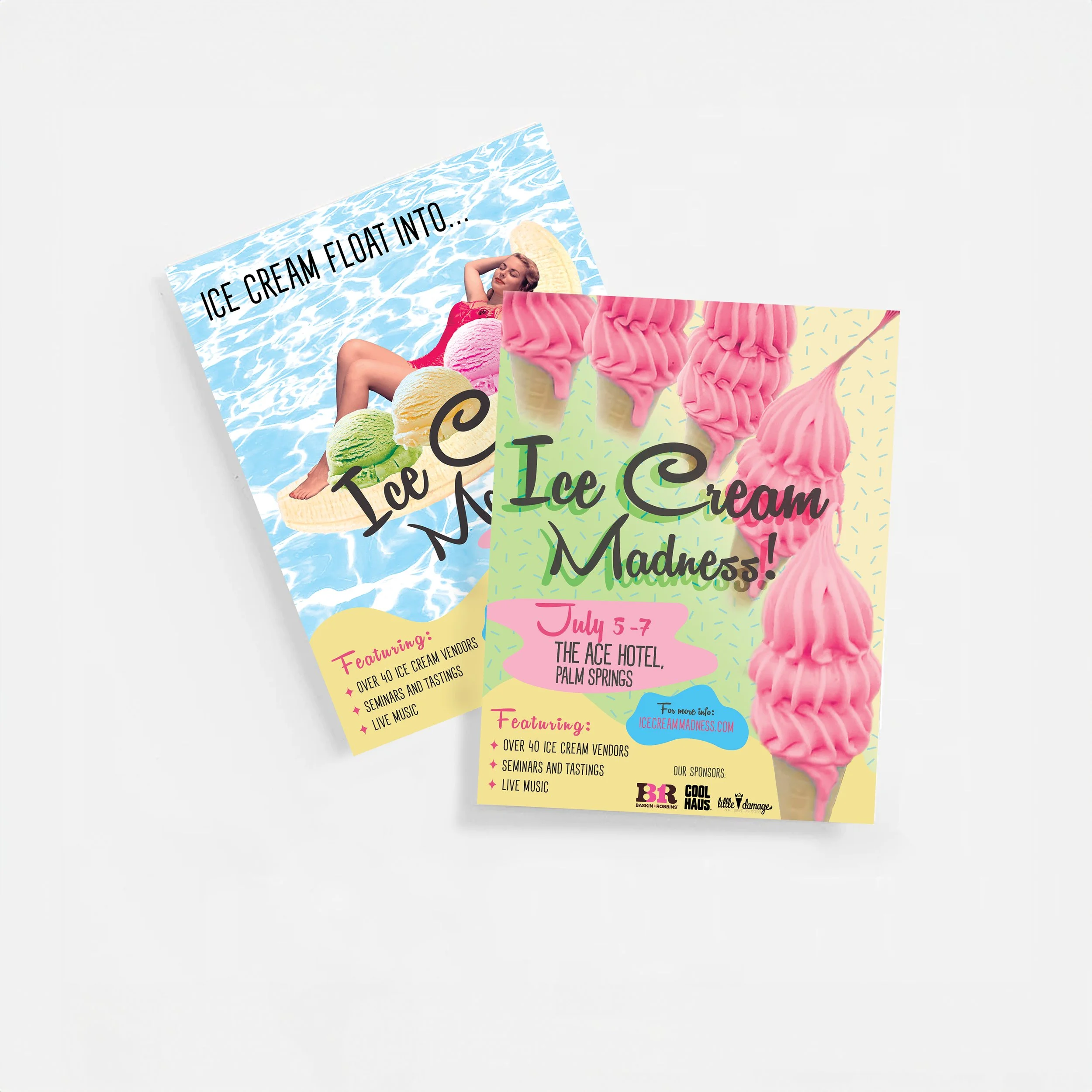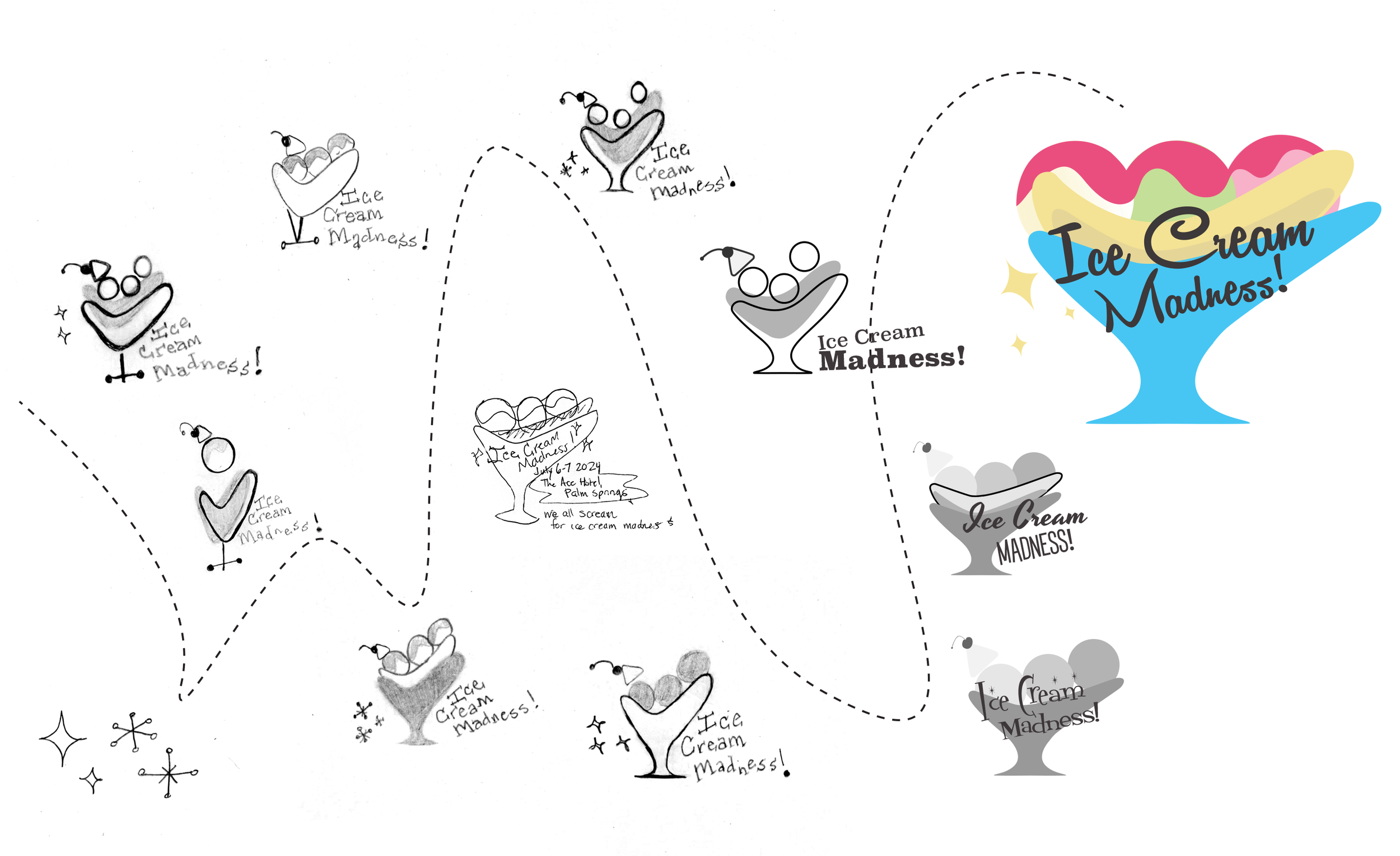 Ice Cream Madness is a fictional ice cream festival held at the Ace Hotel in Palm Springs. This is a self initiated project that includes logo development, branding, and multiple assets including an event map, advertising flyers, and merchandise. The visual identity is inspired by midcentury modern architecture which Palm Springs is so known for, and Googie architecture of roadside diners and attractions.